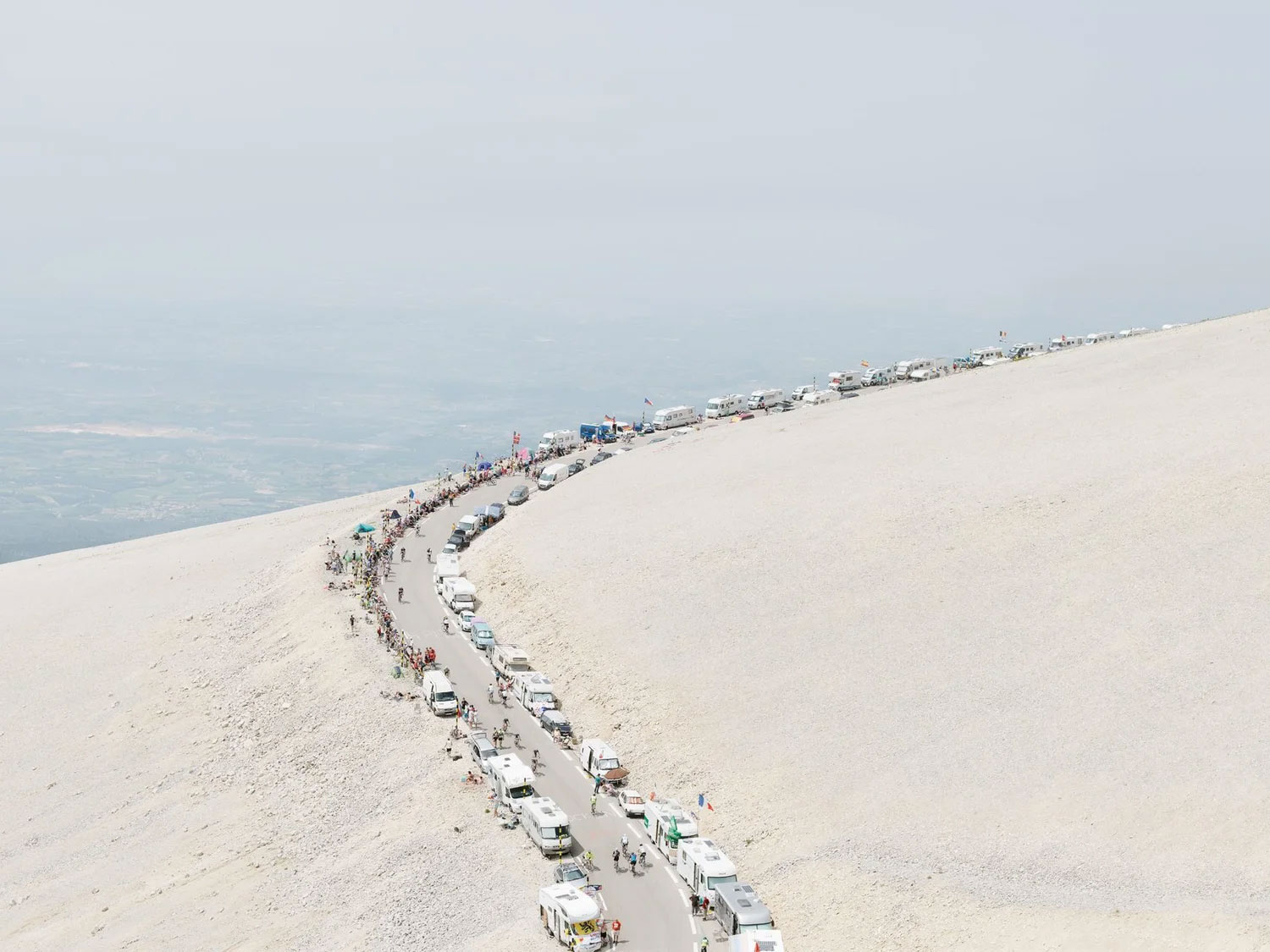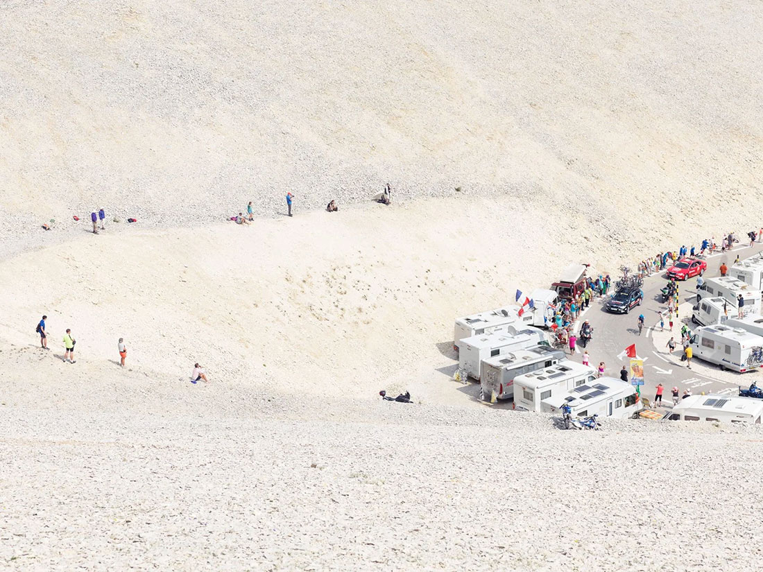 I think cycling and photographing are very similar disciplines for me. I took up cycling to roam and explore and photography allows me to do a similar thing. I’ve always been drawn to large open spaces so photographing the Mountains was a very natural process. I also prefer to be the passive observer so I will step away from the action and view it as a silent bystander. I would watch the Tour caravan snake it’s way up the mountain in the distance, knowing there is a cacophony of sound at the road side but from my position, just the natural sounds of the mountain.