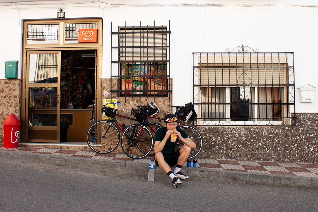 We rode the first 5 km along the coastline, turned north and within minutes we were out of Málaga and on secluded roads. We couldn’t believe it! Before us lay a grand day of cycling. We already knew that entering Granada in daylight was out of the question. 170 km with 3.700 vertical metres stood before us. Starting at sea level and finishing 600 metres above it. The first hour of riding we couldn’t escape the customs of cycling back home. Checking the speed, the time, pushing the pedals, constantly pacing. But something was so very different from back home. Whether it was the steeper gradients, the heavier load, the new roads, the warmer temperatures or the feeling of being on an adventure, who knows? Either way, we slowly settled in. Forgot the speedometer, enjoyed the pure essence of riding through a new landscape in short sleeves and without a car in sight. Taking it all in, and smiling all the way through.